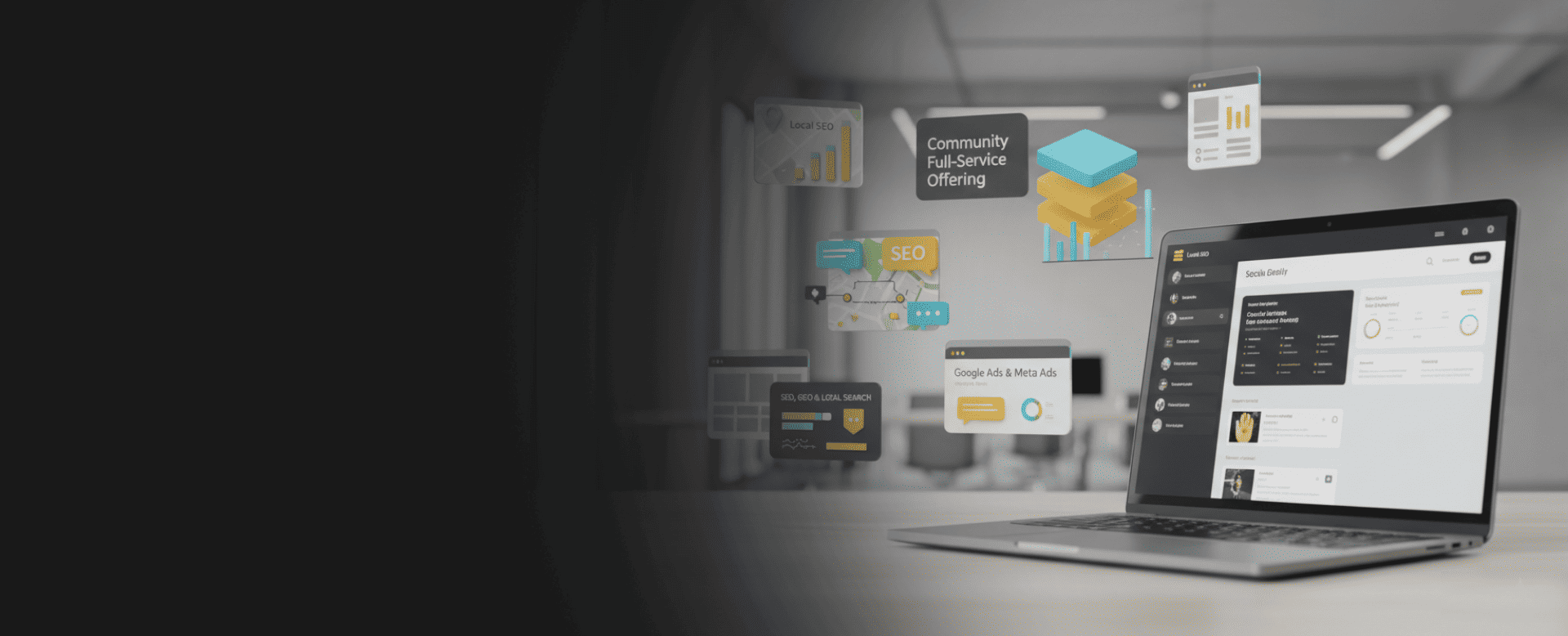 Synergie parfaite entre site web, SEO, publicités payantes et réseaux sociaux.